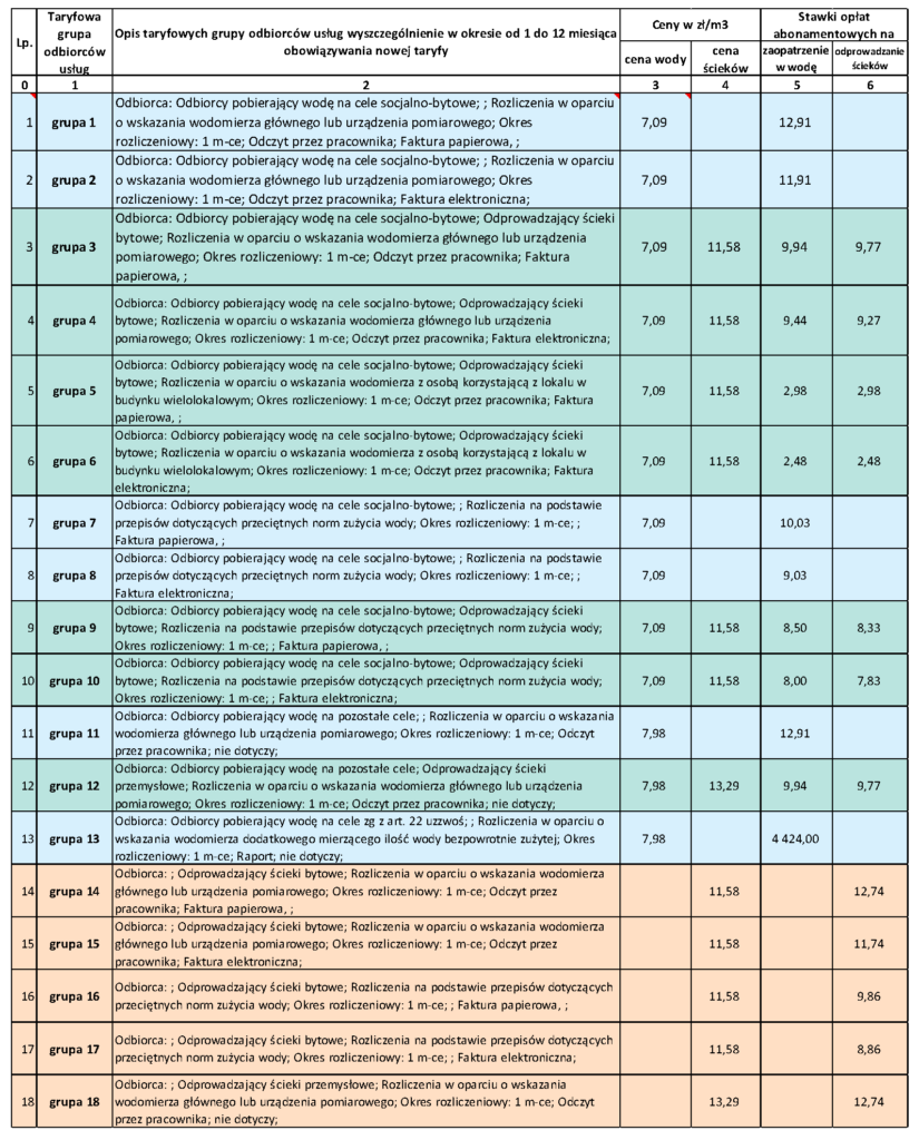 Taryfa, ceny wody i ścieków